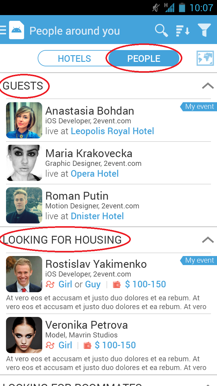 In the end of the event You’ll have not a pack of paper cards and the question :"Who are these people and what are we talk about?" But detailed information about each participant and notes about the meeting in your smartphone.